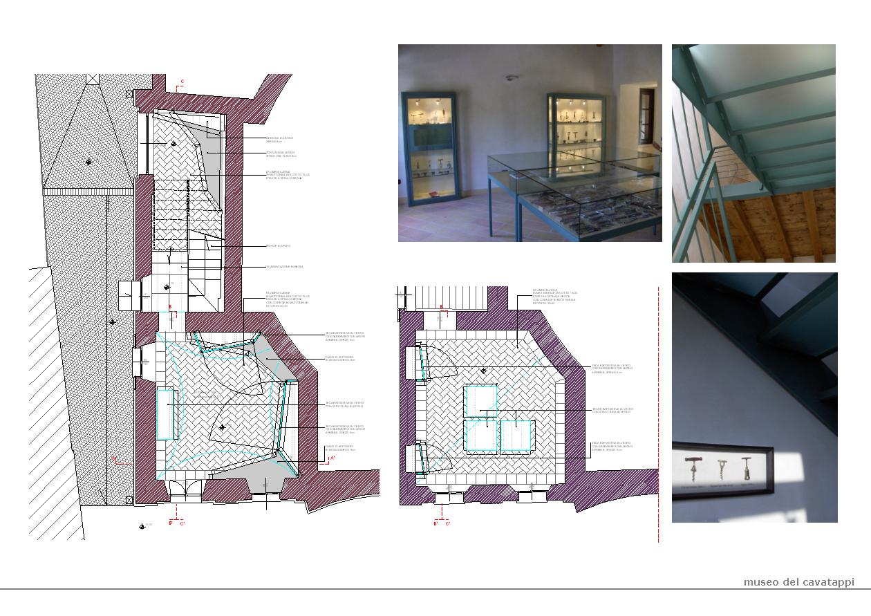Restauro dei locali adiacenti a chiesa parrocchiale con realizzazione delle sale espositive per il museo del cavatappi. L’intervento ha riguardato il consolidamento statico delle strutture murarie, il ripristino delle finiture, l’organizzazione dei percorsi espositivi ed il disegno degli arredi. All’esterno sono stati effettuati interventi di arredo urbano, con rifacimento delle pavimentazioni e realizzazione di percorsi di valenza paesistica.